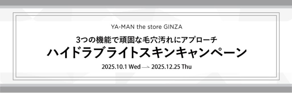 YA-MAN the store GINZA では、10月1日(水)から12月25日(木)まで「ハイドラブライトスキンキャンペーン」を開催いたします。