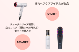 (2)ヴェーダシリーズ製品と店内コスメ〈総額3,000円以上(税別)〉を一緒にご購入で10%OFF